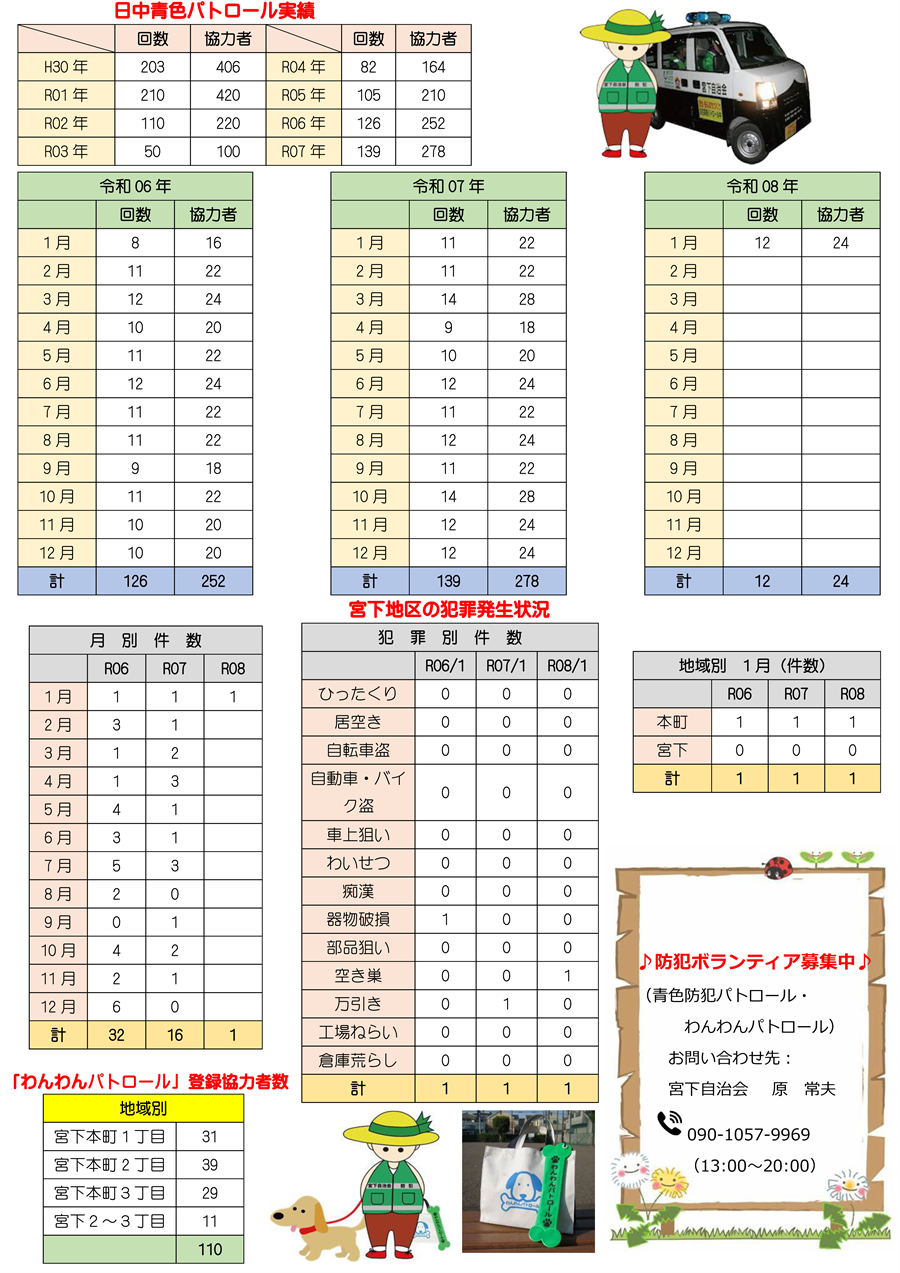 1月 青パト活動と管内犯罪発生情報